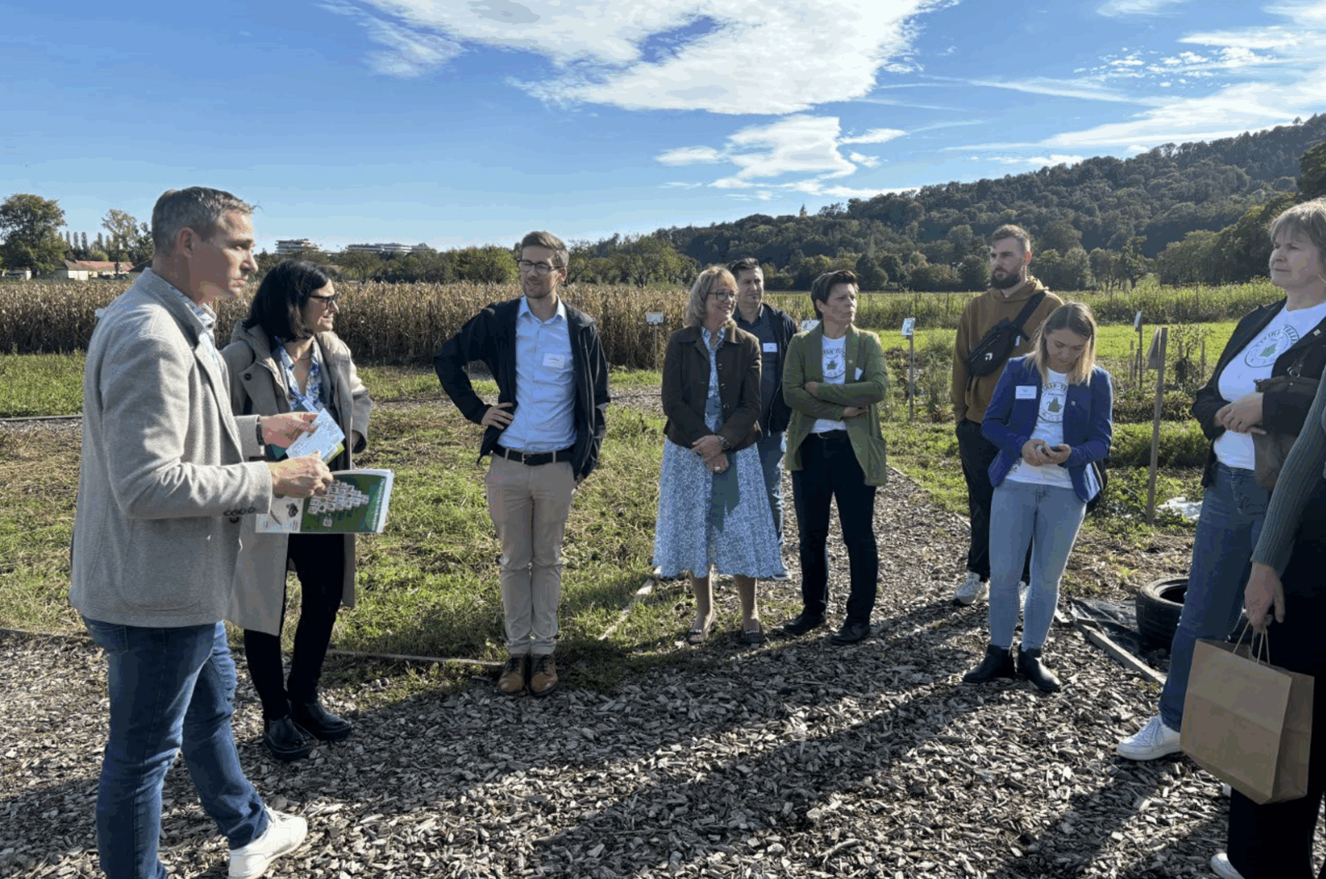 Im parallel angebotenen zweiten Programmpunkt des Nachmittags konnten rund 30 Teilnehmende den schuleigenen „Steireracker“ besichtigen. Auf diesem wird der durchschnittliche Verbrauch an landwirtschaftlichen Ressourcen einer Person auf 2.000 m² Boden angebaut und somit den Besucherinnen und Besuchern ein guter Eindruck anschaulich dazu vermittelt. Anschließend wurden unter dem Titel „Regional leben – regional essen: Vom Steireracker in den Bioladen“ diverse Aspekte (unter anderem die Steirische Ernährungspyramide und der Steirische Gesunde Teller) entlang der Wertschöpfungskette in der regionalen und biologischen Landwirtschaft im Rahmen eines Workshops diskutiert.