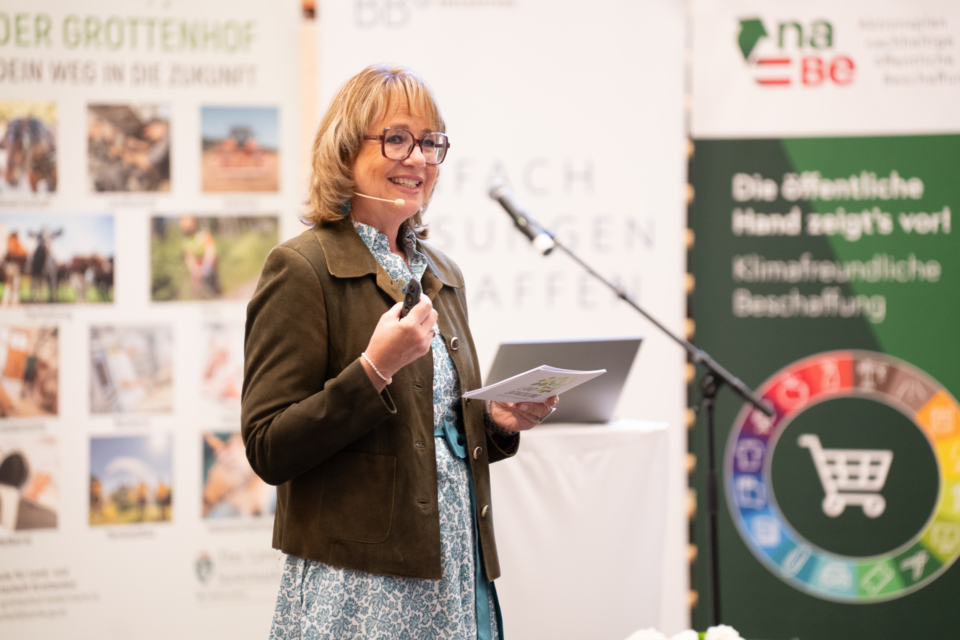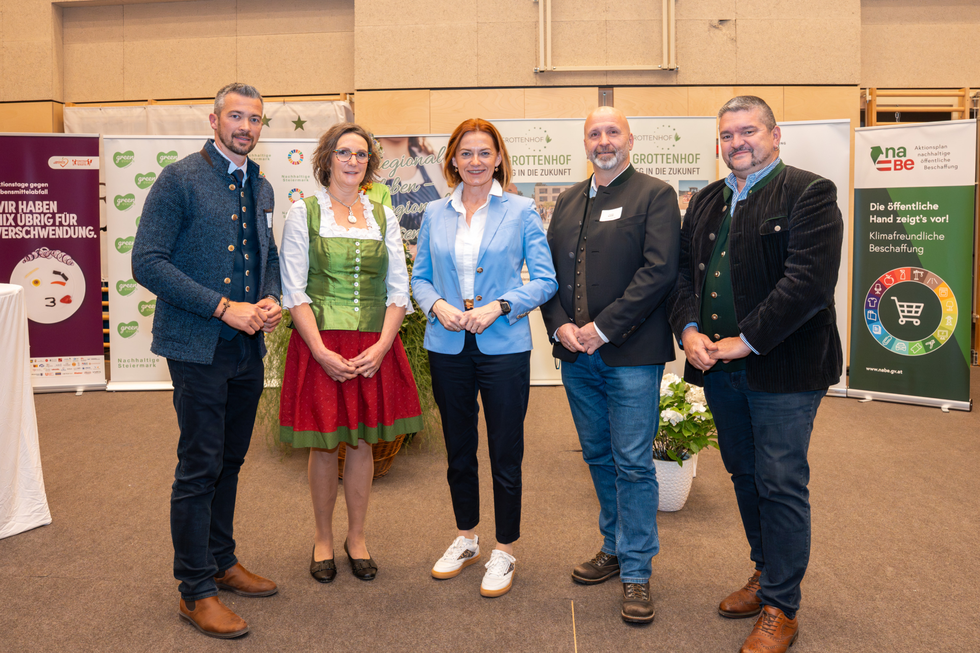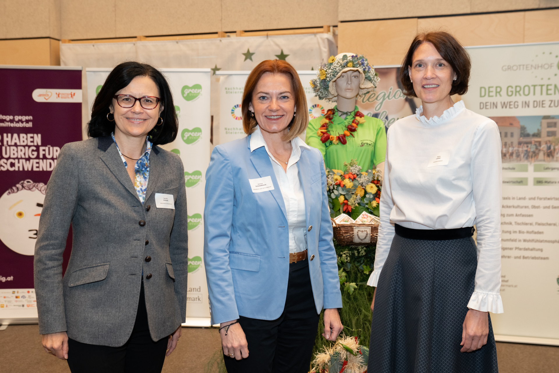 Eröffnungsworte hielten die Landesrätin für Land- und Forstwirtschaft Simone Schmiedtbauer, Maria Leitner, stellvertretende Direktorin der LFS Grottenhof und Gerhard Zotter, Geschäftsführer der Bundesbeschaffung GmbH. Bundesminister Norbert Totschnig war mit einer Videogrußbotschaft vertreten.